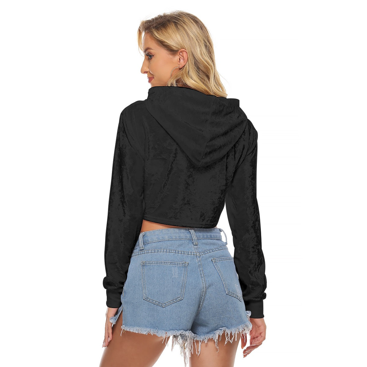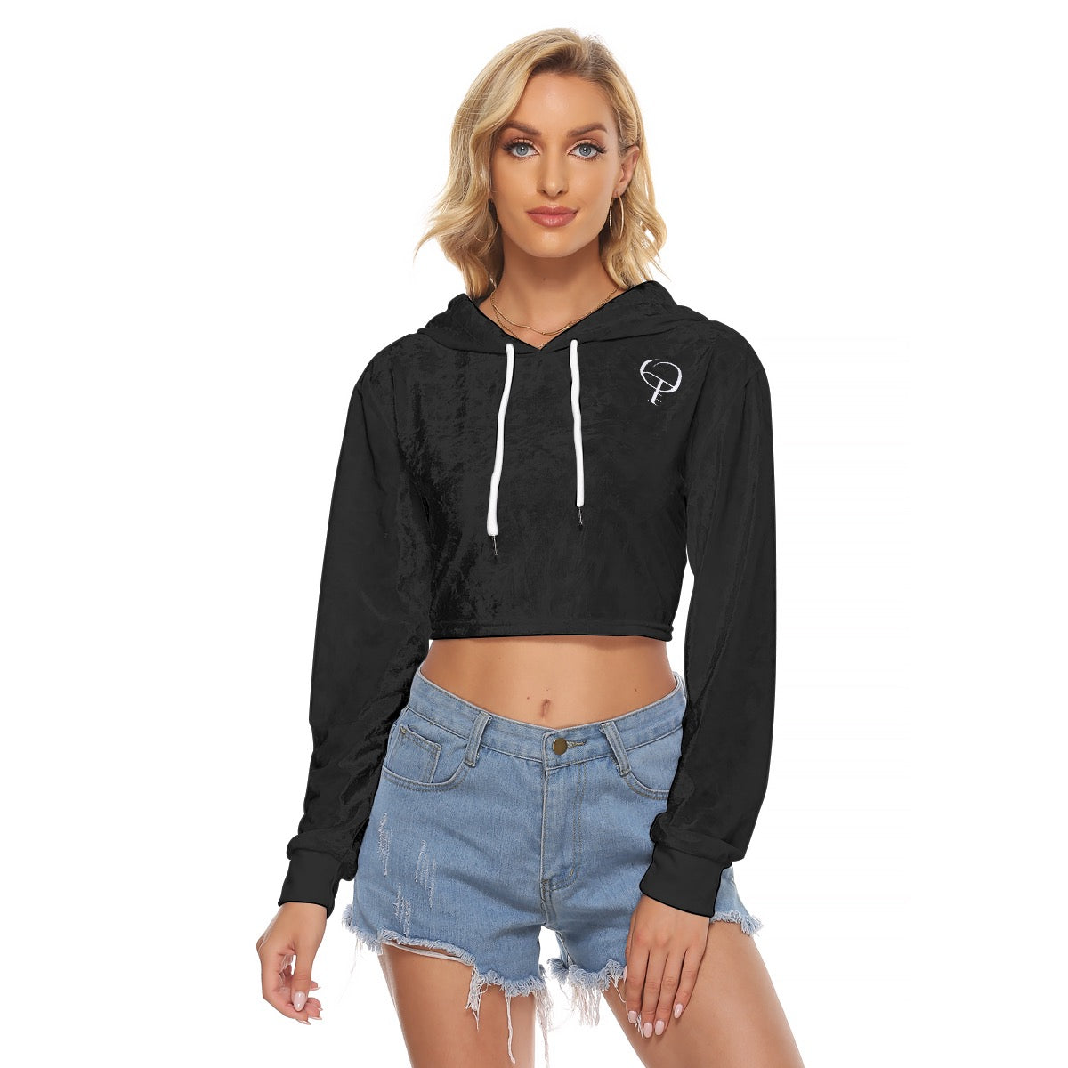 Crop Hoodie à Épaule Tombante, à Manches Longues et Capuche à Cordon