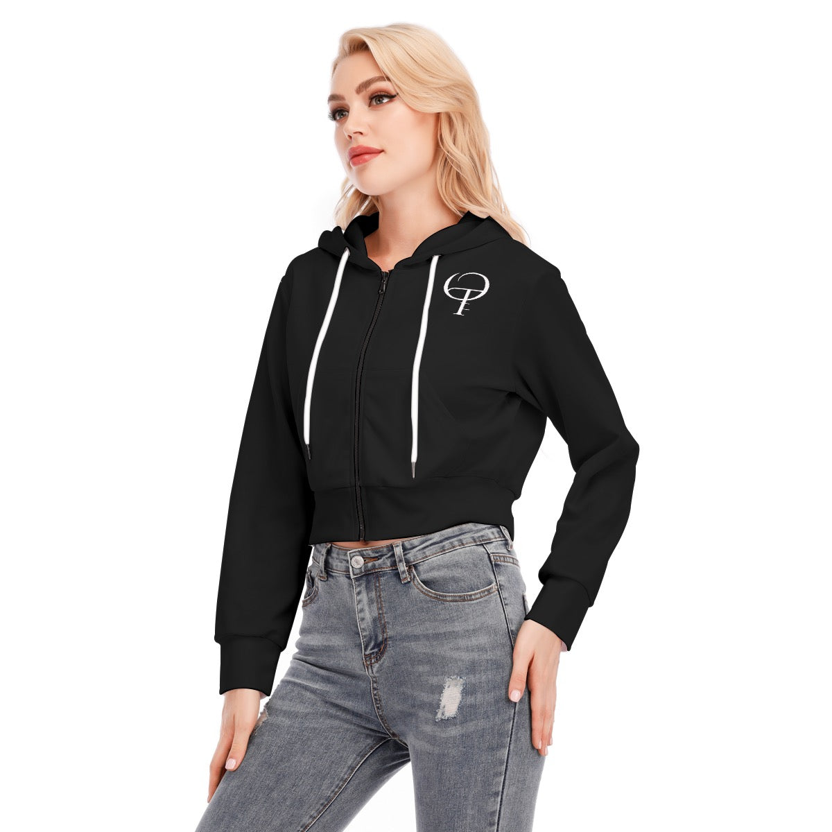Crop Top à Fermeture Éclair avec Poche Kangourou et Manches Longues